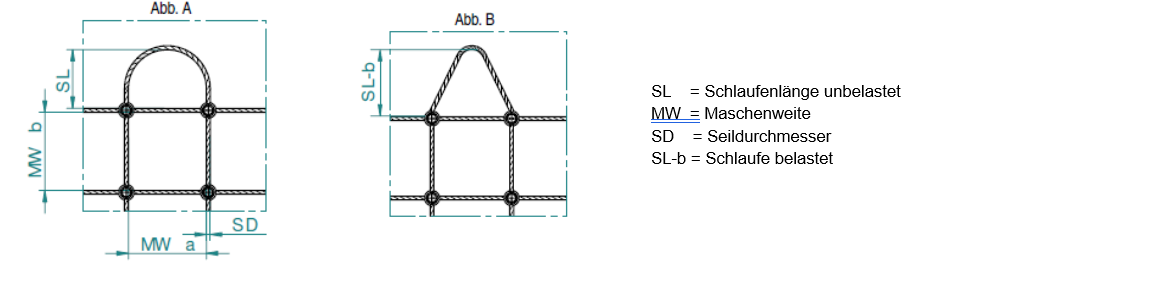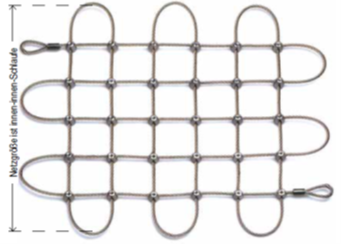 Die angegebene Maschenweite beschreibt das lichte Maß zwischen den Drahtseilen. Größe und Ausführung der Maschen – insbesondere der Randmaschen – werden individuell an die bestellte Netzgröße und die gewünschte Randausführung angepasst und können daher leicht variieren.